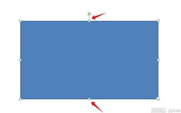 选中要调整的图形,鼠标放到图形上边线或是下边线小矩形框的位置,待鼠标变成双向箭头符号后按住鼠标左键不放,向外或是向内拉动图形,实现图形高度的调整。