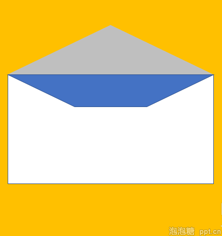 6、接下来,我们要将信封上面的三角形变为梯形(这个只需要插入一个矩形,然后用格式合并形状拆分来完成,和上面是一样的步骤),再使用合并形状剪除将蓝色部分去掉。