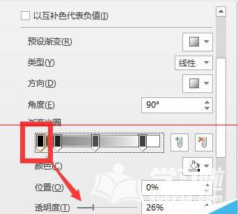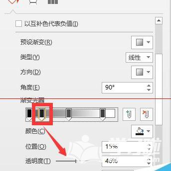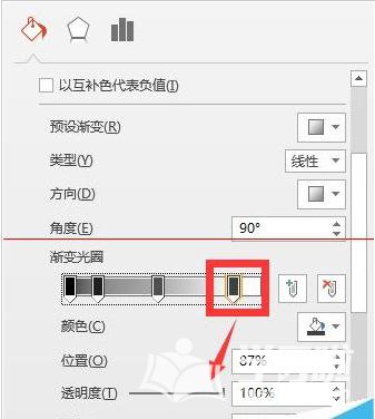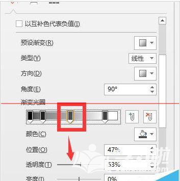 6、这一步我们对用以显示数据大小的系列1进行美化。右键设置系列格式,在填充命令下,选择渐变填充。线性90度向下,4个光圈,颜色都是黑色。第一个光圈透明度26%,第二个光圈46%,这两个光圈位置距离较近,因为投影的正下方是最黑暗的部分。第三个光圈透明度53%,位置可以根据自己的喜好调节,最后一个光圈透明度100%,并适当调整位置。