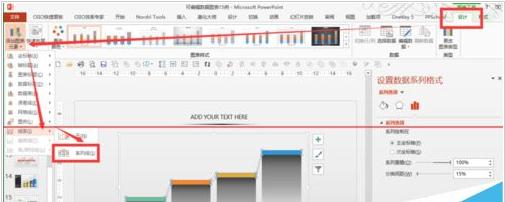 8、选中图表,点击设计,添加图表元素,线条,添加系列线。可以在网上下载一些图标,放在图标上,图表完成。