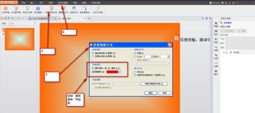 点击菜单栏“幻灯片放映”----->“幻灯片切换”,按图设置