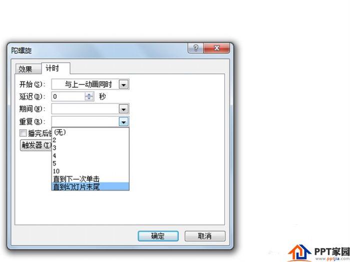 4、执行动画-动画窗格命令,选择所有的动画,调出计时选项卡,设置重复为直到幻灯片末尾。