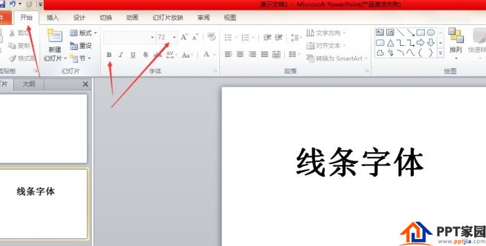 ppt中想要填充文字,该怎么填充呢?下面我们就来看看ppt制作线条字体的教程。更多下载请点击ppt家园。1、首先打开PPT软件,进入到PPT页面。如图:2、插入——文本——文本框——输入字体“线条字体”。如图:3、设置“