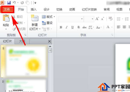 将你的文件发给安装有高版本软件的人,请求他将文件进行转换。转换的方式为:打开文件,点击ppt坐上角的【文件】菜单。