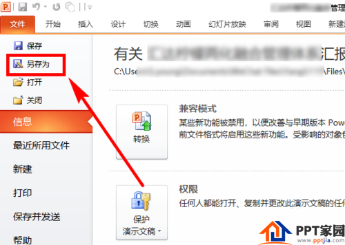 在使用低版本的office或者是wps软件打开高版本的文件时就会出现异常,为此,我们需要将高版本的文件转化为低版本文件才可以打开,那么如何转化呢?更多下载请点击ppt家园。