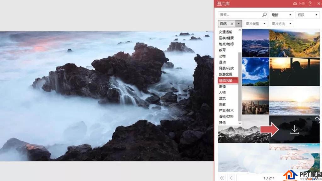 2、案例中是直接从 iSlide 【图片库】» 自然风景