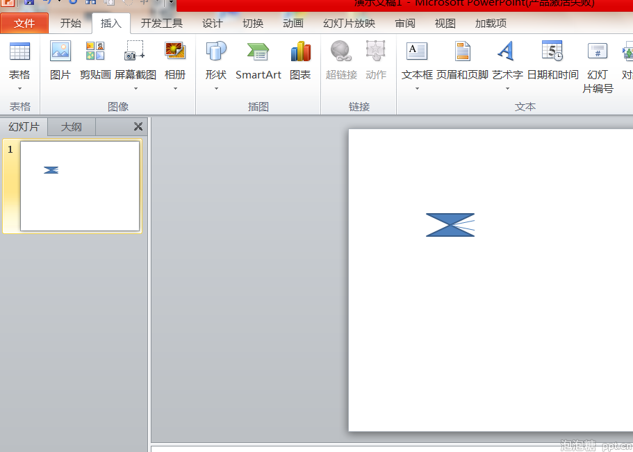 第一,新建一个PPT幻灯片。然后点击形状,插入一个蝴蝶翅膀的形状。