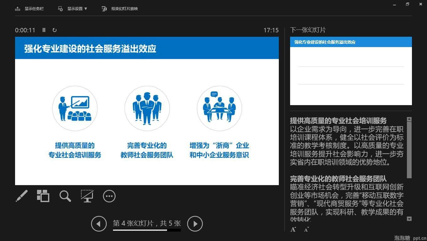 这样的话,既能让领导看到文字备注不忘词,还能提前看到下一页,让领导顺畅转场,而且 PPT 简洁有逼格,一箭三雕!