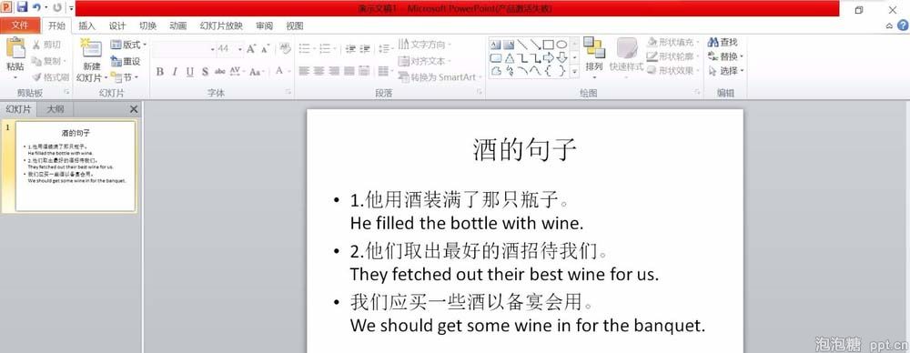 1、首先,我们需要将文字输入进文本框中。并选中需要制作成艺术字的文字,如下图所示,我们选中“酒的句子”等几个字,用它来演示如何制作成艺术字体。