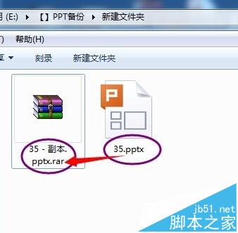 1、首先给PPTX文件复制一个备份。把备份的文件后缀名PPTX改为RAR,把这个PPTX文件当做一个压缩包文件。
