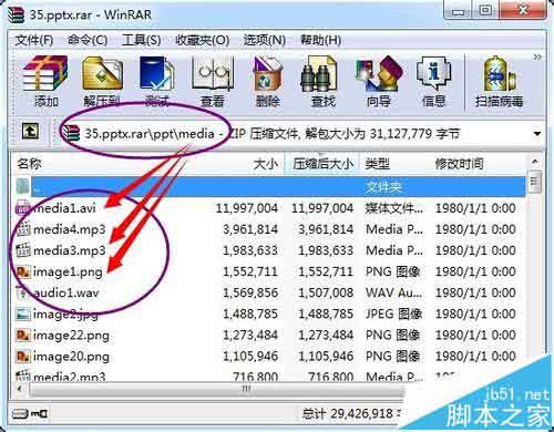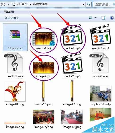 有些高版本PPT软件保存的,包含音乐视频、图片的多媒体类型的PPTX文件,用低版本的PPT软件无法正常使用,急着要用里面的视频音乐或图片,却来不及安装高版本PPT软件,要怎么办呢?请看下面的方法。 1、首先给PPTX文件复制一个备份。把备份的文件后缀名PPTX改为RAR,把这个PPTX文件当做一个压缩包文件。2、双击改为压缩包的这个备份文件。就能用winrar软件把这个PPTX当成压缩包来打开它