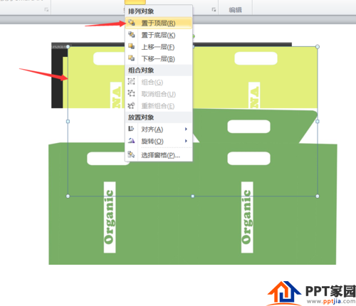 第一个,我们选中第二张图片,然后点击上方的排列,选中置于顶层,可以看到第二张图片已经置于顶层,覆盖为最上面的一层图片了。如下图所示。