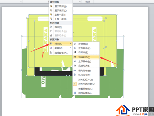最后,为大家讲解放置处对象。我们选中所有的图片,然后点击上方的排列,选择对齐,然后再选择顶端对齐,可以看到我们选中的图片全部都以我们选中的为基准,顶端对齐了,如下图所示。