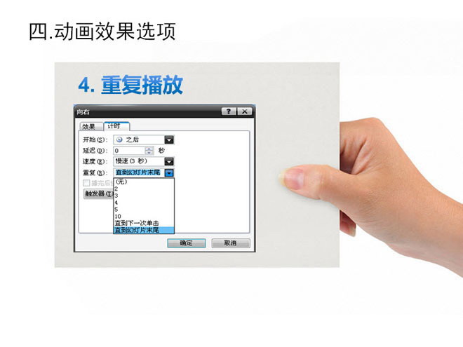 另外需要注意的呢,就是常用在展示会等场合的,需要无人操作并可循环播放的“重复”动作