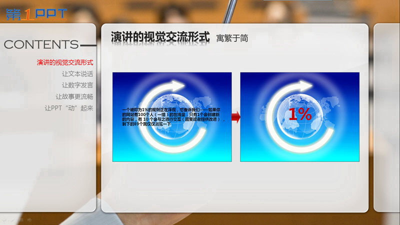 演讲的视觉交流形式——对于演讲来说,以演讲者为主,PPT为辅!