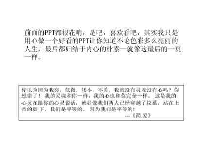 啥是找对象的专业精神?无非就是主动、用心、肯花脑筋。编辑搜罗到一个上班族mm为征男友精心制作的一份极有创意的PPT,堪称“征友ppt模版”。我常常想,如果我们都把应对老板所花费的脑细胞分一半给找对象事业,国家该操心的就不是剩男剩女问题,而是计划生育问题了。 http://www.pptjia.com |