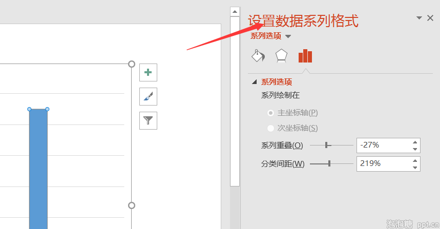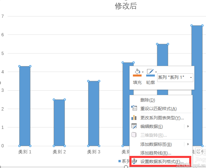 4、点击图表,如下图之后鼠标右击,在弹出来的对话框中选择“设置数据系列格式”,得到设置数据系列格式操作面板