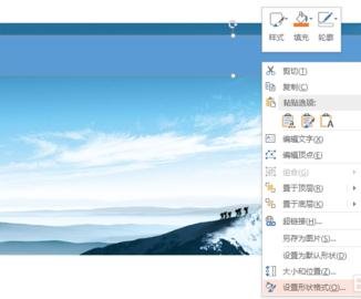 鼠标右键单击长方形,再出现的鼠标菜单栏选择最下面的“设置图片格式”。