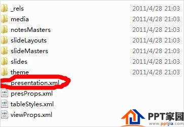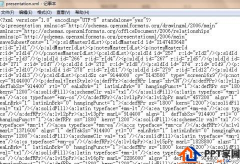 3:按照上面分解PPT后,用记事本打开presentation.xml这个文件