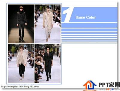 看见了没有?今天我就用世界顶尖男装来告诉你PPT配色的原则。今天选择的是Dior Homme及GUCCI的09年春夏季及09-10年秋冬季最新款。