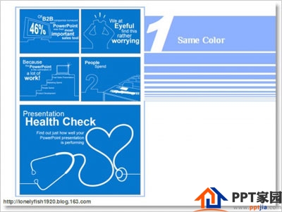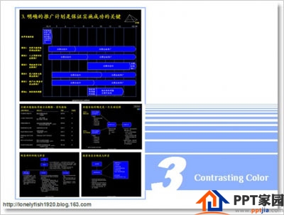 色数:这个原则下的PPT,整套PPT的颜色一般不超过2个