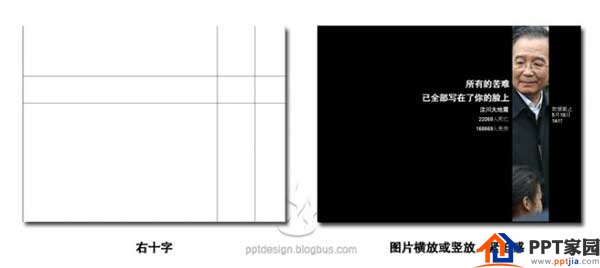 中国人叫九宫格,是最被大家熟知的PPT构图原则,在摄影,网页设计上也被大量采用,PPT版式中如果图片放在上三分一,就有了“天”,放在下三分一,就有了“地”,关于天地我一直很另外想写一篇PPT教程文章,以后吧。